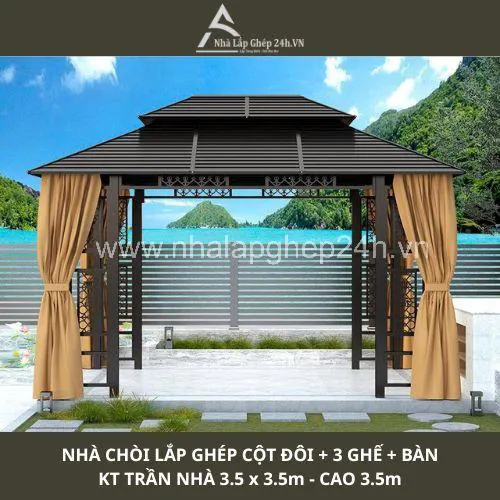 Nhà Chòi Lắp Ghép Cột Đôi 3.5×3.5×Cao 3.5m – Không Gian Sân Vườn Đẹp Chuẩn Hiện Đại