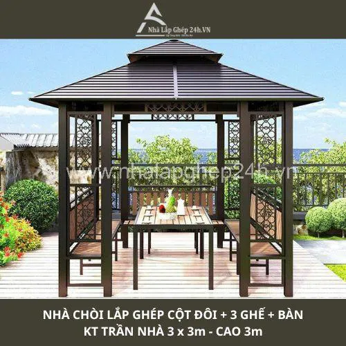 Chòi Lắp Ghép Tứ Giác Cột Đôi 3x3x3m – Giải Pháp Ngoài Trời Đẹp Bền Chuẩn Kiến Trúc Sân Vườn